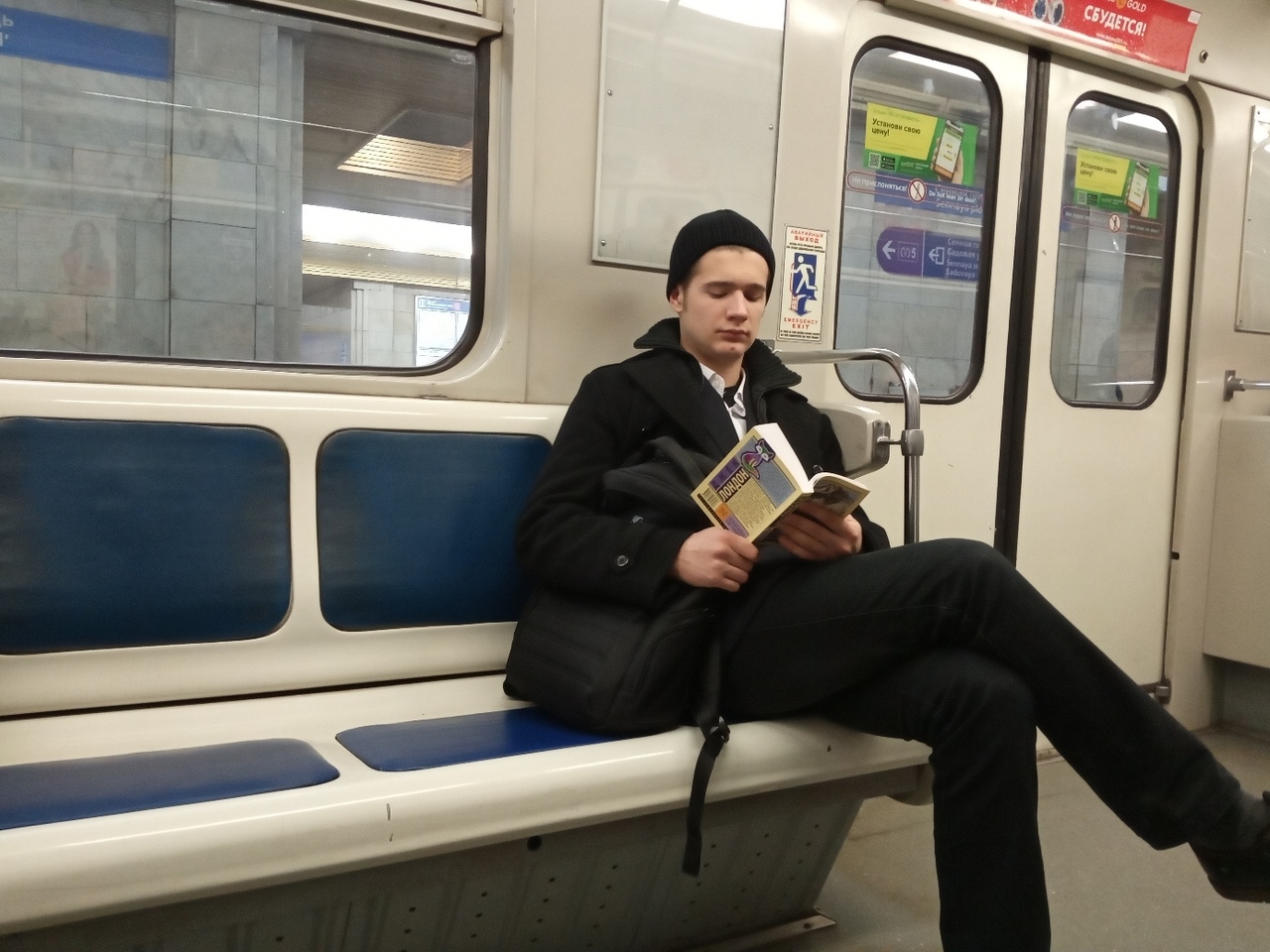 А еще - вот вам вечернее субботнее питерское метро. Мальчики - читают. Книги.